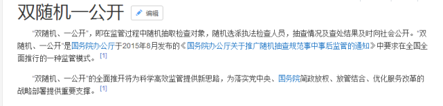 估计很多人到现在都还不知道什么是“双随机”,让我们来看看百度百科的解释: