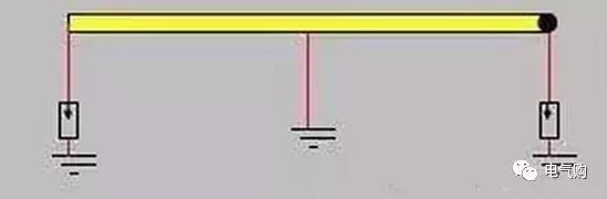 可看作一端接地线路长度的两倍; 护套中间接地,两端各加一组保护器。