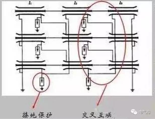 通过两个交叉互联箱,两次互换,实现感应电压叠加后向量为零,起到限制感应电压的作用。